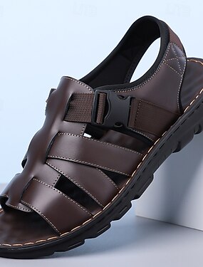 Мужские коричневые кожаные рыбацкие сандалии с закрытым носком и открытым верхом, повседневные прогулочные туфли с регулируемой пряжкой, идеально подходящие для повседневной носки, путешествий, отдыха на природе, летнего отпуска и комфортного повседневног