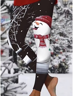 Рождественские женские леггинсы с графическим принтом снеговик отпуск винтажная мода полный длины высокая талия брюки уродливый графический принт термальные теплые мягкие дышащие тянущиеся формальные