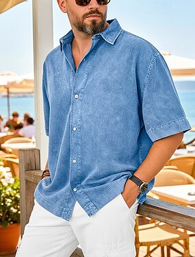 Муж. Рубашка Повседневная рубашка Винтажная рубашка Кнопка рубашка Рубашка с кислотной стиркой Черный Розовый Темно-зеленый Лиловый Зеленый С короткими рукавами Полотняное плетение Лацкан