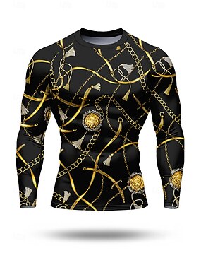 Муж. Компрессионная футболка Футболка для бега 3D печать Длинный рукав Основной слой Полоски Быстровысыхающий Сжатие видеоизображений Для тренировки Power Flex Влагоотводящие