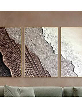 3D-текстурированная картина на стену в рамке с изображением океанской волны на холсте, триптих, декор для дома, коричневая минималистская картина в земляных тонах в стиле ваби-саби, искусство для гостиной