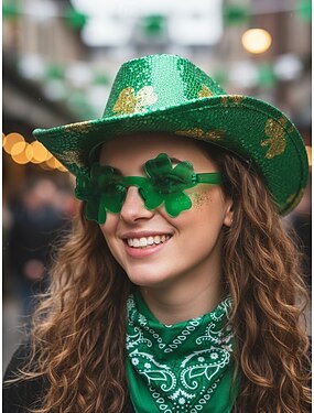 Женский комплект из трех предметов: ковбойская шляпа с пайетками ко Дню Святого Патрика и солнцезащитные очки с клевером. &Зеленый набор бандан – праздничные блестящие аксессуары для костюмов на
