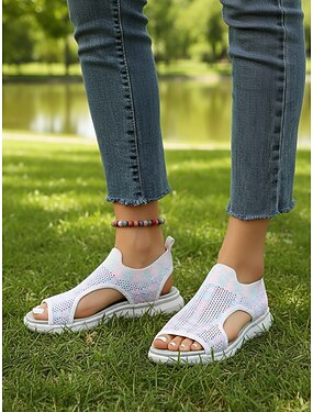 Белые дышащие сетчатые повседневные сандалии для женщин — легкая летняя обувь для повседневных прогулок, путешествий, прогулок по саду, отдыха на пляже и комфортного отдыха на природе.
