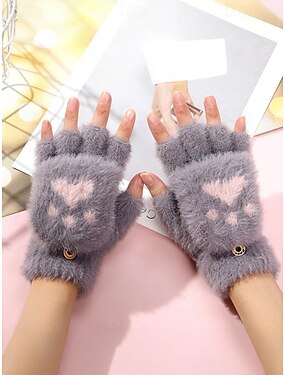 Женские вязаные перчатки без пальцев «кошачья лапка» из мягкой плюшевой ткани, доступны в нескольких цветах, идеально подходят для зимы и повседневной носки.