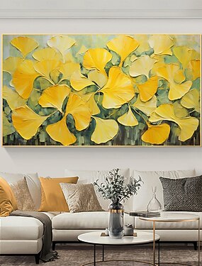 Золотые листья современное искусство ручная роспись абстрактная негабаритная дополнительная картина большой нож палитра ручная роспись толстая текстура современная живопись настенная живопись для