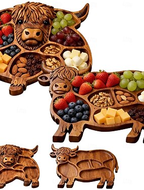 Деревянная доска для закусок в виде шотландской коровы, деревянное блюдо для еды в виде коровы, деревенская сервировочная доска в стиле фермерского дома, поднос для закусок, фруктов, мяса и сыра для