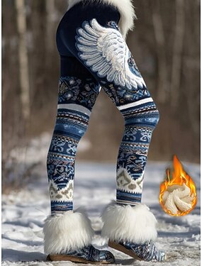 Леггинсы для женщин викингов бохо с флисовой подкладкой отпуск винтажный этнический стиль полный длины средней талии эластичные для зимних прогулок темно-серые осень-зима