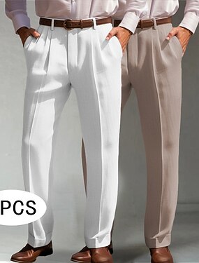 Муж. Льняные брюки Штаны Костюм Летние штаны Передний карман Плиссировка Прямая нога Полотняное плетение Комфорт Дышащий Полная длина Официальные Бизнес Повседневные Мода Классический