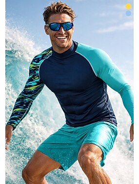 Муж. Рашгард Плавки-шорты Геометрический принт UPF50+ УФ-защита Быстровысыхающий Длинный рукав Купальники Рашгард Серфинг Гребля на каное Пляж Лето