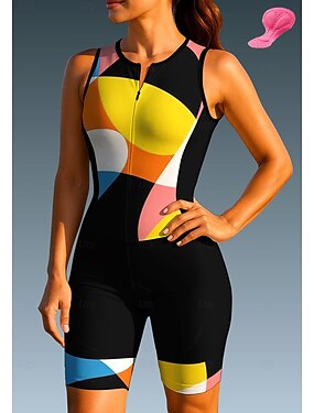 Жен. Велокофты Костюм для триатлона Сноуборд Джерси Без рукавов Лето Весна Осень Черный / желтый Геометрический принт Изгибы Смешной Велоспорт Защита от солнечных лучей Устойчивость к УФ 3D