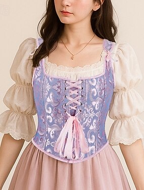 Ретро Средневековый Эпоха возрождения Корсет Жилет Бюстье Шнуровка Цветочный принт Жаккард Маскарадный костюм Жен. Селтик фантазия Королевский Рождество Хэллоуин Карнавал