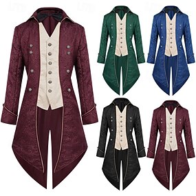 Ретро Средневековый Эпоха возрождения Пальто Фрак Верхняя одежда Длинные рукава Принц Дворянин Маскарадный костюм Муж. Стимпанк Хэллоуин Карнавал Маскарад