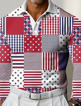 Муж. Геометрический рисунок Рубашки-поло из вафельной ткани С короткими рукавами Футболки поло Рубашки с воротником Деловая одежда Бизнес Одежда для спорта и отдыха Носить на работу Пуговицы 3D печать