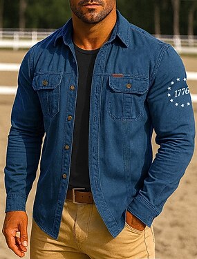 Муж. Патриот 1776 г. Рабочие рубашки Западная рубашка Рубашка-карго Длинный рукав Тактический Винтаж Ретро Для спорта и активного отдыха Рабочая одежда Весна Осень Отложной