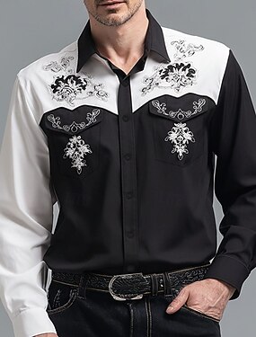 Муж. Этнический Барокко Завитки Рубашка Западная рубашка Ковбойская рубашка Длинный рукав Винтаж Ретро на открытом воздухе Повседневные Рабочая одежда Лето Весна Осень Отложной