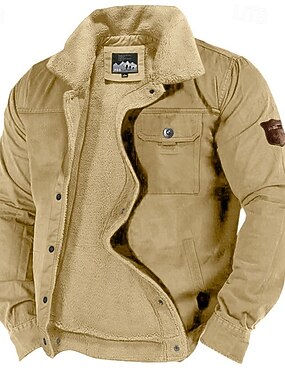 Муж. Вельветовый пиджак Флисовая жилетка Куртка-карго Куртка для работы по дому Официальные Дом Ветровка Прочный Карман Воротник из флиса Осень Зима Сплошной цвет Активный Винтаж Воротничок Обычная