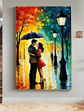 большая фигура картина маслом ручная работа акриловые женщины дождливый городской пейзаж оли живопись большая уличная живопись пейзаж маслом ручная роспись холст искусство настенная живопись ручная