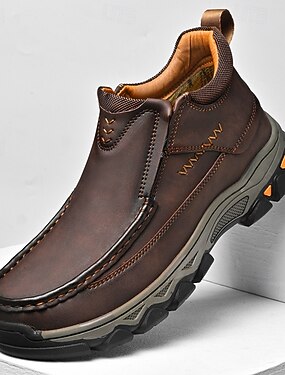 мужские рабочие туфли из искусственной кожи темно-коричневого цвета с амортизацией — прочная и удобная обувь для работы на открытом воздухе и походов