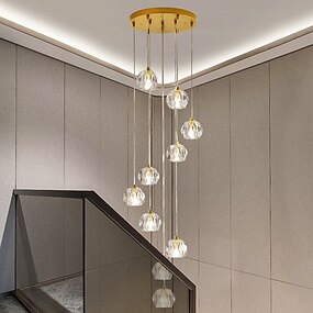 люстра со светодиодным хрусталем, 10 ламп, 35 см, скрытое крепление, винтовая лестница, длинная люстра, вилла, лестница, дуплексная люстра, 10-120 В / 220-240 В / g9