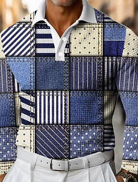 Муж. Пэчворк геометрический Рубашки-поло из вафельной ткани Длинный рукав Футболки поло Рубашки с воротником Деловая одежда Бизнес Носить на работу На каждый день Пуговицы Весна Осень Зима