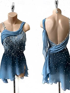 Платье для фигурного катания Жен. Катание на коньках Платья Синий Пэчворк Открытая спина Эластичная Учебный Соревнование Одежда для фигурного катания Классика Стразы Без рукавов