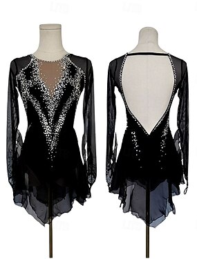 Платье для фигурного катания Жен. Девочки Катание на коньках Платья Черный Пэчворк Открытая спина Сетка Спандекс Эластичная Учебный Тренировочные Профессиональный стиль Одежда для фигурного катания