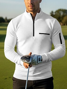 Муж. Вафельная рубашка поло Поло с молнией на четверть Повседневные Праздники Четверть молния Длинный рукав Мода Современное Полотняное плетение Карман Весна & осень Стандартный