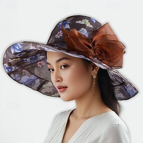 Шляпы Полиэстерная Солнечная шляпа Праздничная чайная вечеринка Лошадиные бега Коктейльная Элегантная Винтажная Симпатичная с бантом