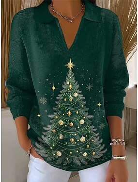 Жен. Вязаная ткань На каждый день Мягкий Новогодняя ёлка Рельефный узор V-образный вырез Трикотаж Длинный рукав Обычные топы Вязать Рождество на открытом воздухе Повседневные Зеленый Осень Зима