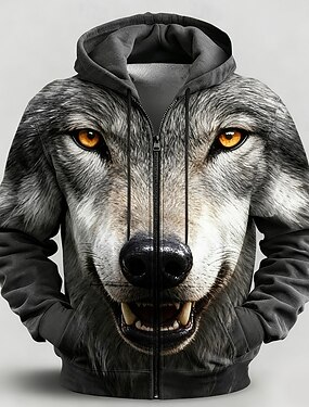 Муж. Волк Худи Толстовка Мода Круто Повседневные Длинный рукав Вырез под горло Для вечеринок Праздники Уличная одежда Коричневый Кулиска Осень Зима Дизайнер S M L XL XXL XXXL