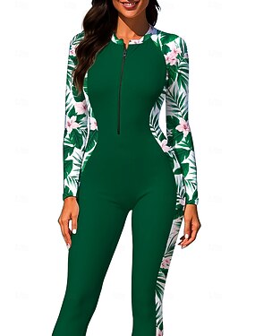 Жен. Стандартный Рашгард Рашгард на все тело Цельный костюм для серфинга Цветочные тропический Застегнуться со встроенным бюстгальтером Передняя молния УФ-защита от солнца Закрытая чашечка UPF50+