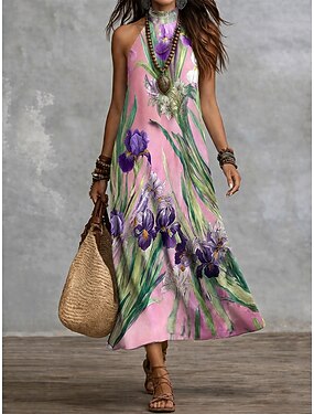 Жен. длинное платье платье макси Повседневное платье Платье в стиле 50-х годов Летнее платье Элегантный стиль Мода Романтика на открытом воздухе Для вечеринок Праздники Стандартный Цветы