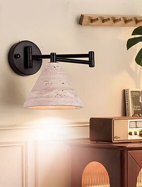 Черный настенный светильник с поворотным кронштейном, винтажные светильники из желтого травертина, бра с абажуром из натурального камня, для освещения кабинета/гостиной/спальни