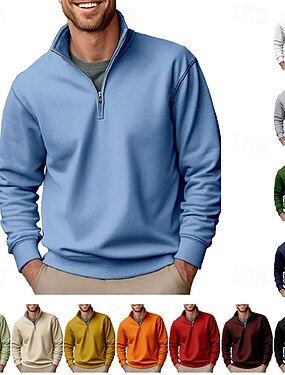 Муж. Толстовка Натяни Толстовка с застежкой-молнией Джинсовый Синий Черный Желтый Светло-зеленый Розовый Воротник-стойка Половина молния Полотняное плетение Молния