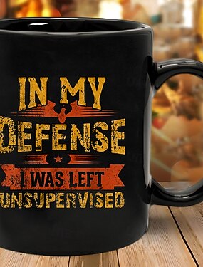 Забавная подарочная кружка с надписью «В свою защиту скажу, что меня оставили без присмотра». Забавная черная керамическая кофейная кружка, идеально подходящая для коллег, друзей или для себя.