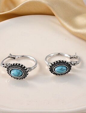 Серебряные серьги-кольца в стиле бохо с бирюзой – винтажные украшения в племенном стиле для женщин