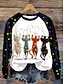 Жен. Пуловер Толстовка Худи Графика Животное Новогодняя ёлка Мода На каждый день Длинный рукав Вырез под горло Круглый вырез Обычные топы Для улицы На каждый день Повседневные С принтом