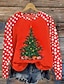 Жен. Пуловер Толстовка Худи Графика Новогодняя ёлка Мода На каждый день Длинный рукав Вырез под горло Обычные топы Для улицы На каждый день С принтом Белый Красный Зеленый Весна Осень Зима