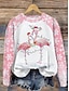 Жен. Пуловер Толстовка Графика Животное Новогодняя ёлка Мода На каждый день Длинный рукав Вырез под горло Обычные топы Для улицы На каждый день С принтом Черный Розовый Красный Осень Зима