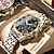 Современные мужские наручные часы, модные мужские кварцевые часы со стразами, двойной календарь, светящийся циферблат, корпус из нержавеющей стали, ремешок, лучший выбор подарка для мужчин.