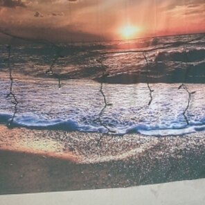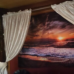 It looks good now up, although the image itself isn’t that crisp. The description said an installation kit included but it wasn’t. Took some ironing to get the creases out but happy with the overall effect.