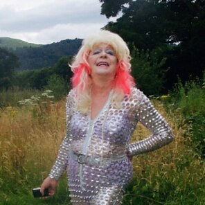 This was a try to look ultra femmeand really sparkle. It worked beautifully and going out in a silver cat suit attracted favourable attention everywhere. Even in North Wales !!