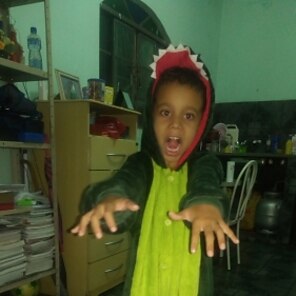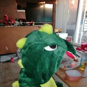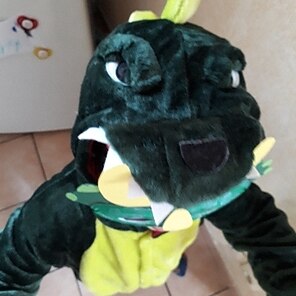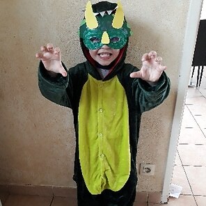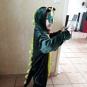 Flauschiges Kostüm, was mein Enkel gleich anlassen wollte
