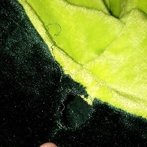 отверстие в ткани спереди на шве ... в противном случае очень хорошая статья! очень мягкий на ощупь, как мягкая игрушка! размер тоже идеален! мы, наконец, готовы к карнавалу! спасибо!