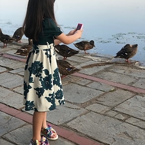 Very pretty dress. It is made of thin material. But very pretty and my daughter love it.