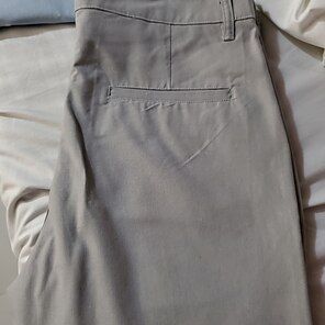 A lightweight pair of pants perfect for Summer/warm weather. Real pockets and a metal zipper. Good fit.