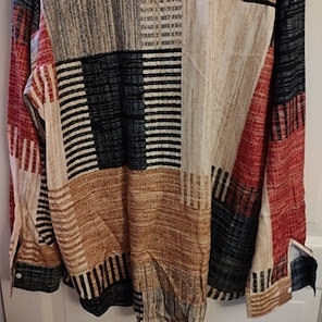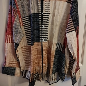me encantó la tela, los colores muy vivos, la talla la pedí habitual y le quedó perfecta, se ve muy casual y elegante a la vez.