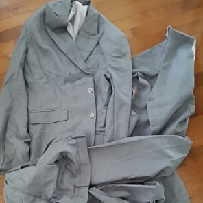 Нам пришлось взять больший размер, так как костюм немного маломерит, поэтому я бы порекомендовал взять на размер больше. Костюм был надет на свадьбу и выглядел потрясающе, качество было хорошее, и когда мы подобрали правильный размер, он выглядел потрясающе, особенно с черным галстуком и подходящим карманным платком.