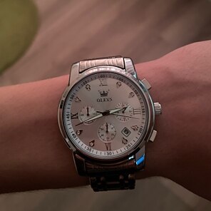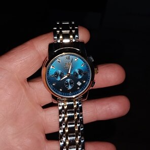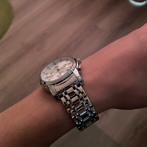 Очень стильно и кажется надежным и долговечным, плюс достаточно легко изменить дату / время, очень доволен. Просто имейте в виду, что ремешок часов довольно большой, поэтому вам, возможно, придется отнести его к ювелиру, чтобы вытащить пару звеньев.
