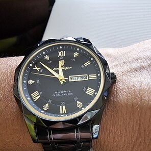 Красивый внешний вид, легко читаемая дата. Пришел с правильным временем и датой, черным и золотым цветом Чемпионов и имеет вес и ощущение дорогих часов, и прошел тест жены. Мы любим его и рекомендуем эти часы всем. Спасибо за отличную сделку!
